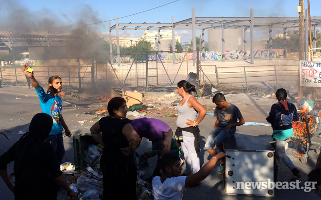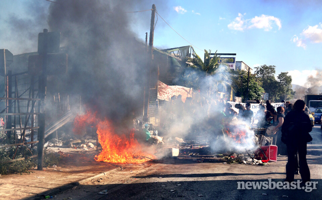 Το κλίμα είναι εξαιρετικά τεταμένο καθώς οι αρχές είχαν δώσει διορία μέχρι τις 9:30 για να διαλυθεί η συγκέντρωση και να ξεκινήσουν οι κατεδαφίσεις των πρώτων 12 παραπηγμάτων.