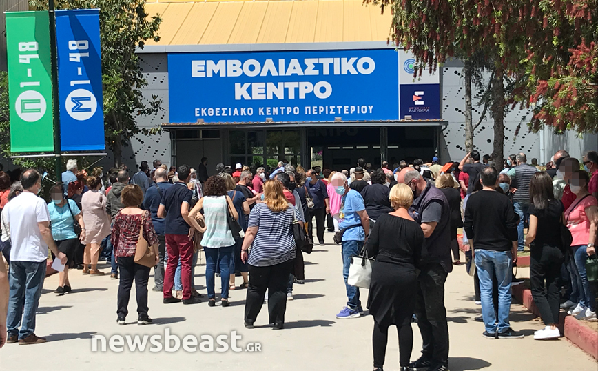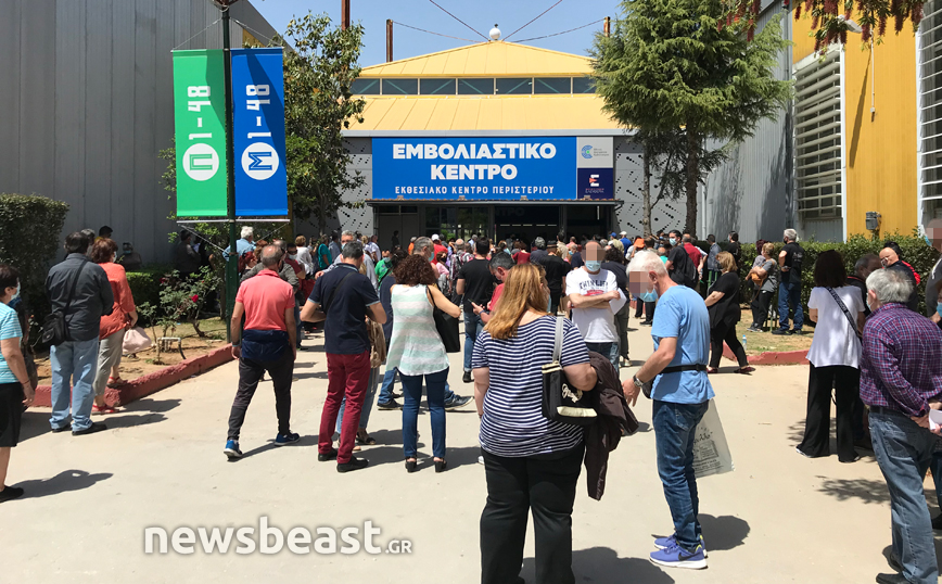 Τεράστιες ουρές από πολίτες που έχουν κλείσει ραντεβού για το εμβόλιο είχαν δημιουργηθεί από νωρίς το πρωί έξω από το εμβολιαστικό κέντρο του Περιστερίου, με τα ραντεβού να καθυστερούν.