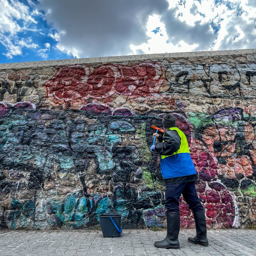 Παράλληλα, τα καλόγουστα γκράφιτι, εικαστικής αξίας σε όλο το μήκος του πέτρινου τοίχου προστατεύθηκαν με ειδικά καλυπτικά, που δρουν ανασταλτικά σε κάθε προσπάθεια βανδαλισμού. Αυτή, άλλωστε, είναι η γενική αρχή που ακολουθεί ο δήμος Αθηναίων για αυτή την μορφή σύγχρονης τέχνης.