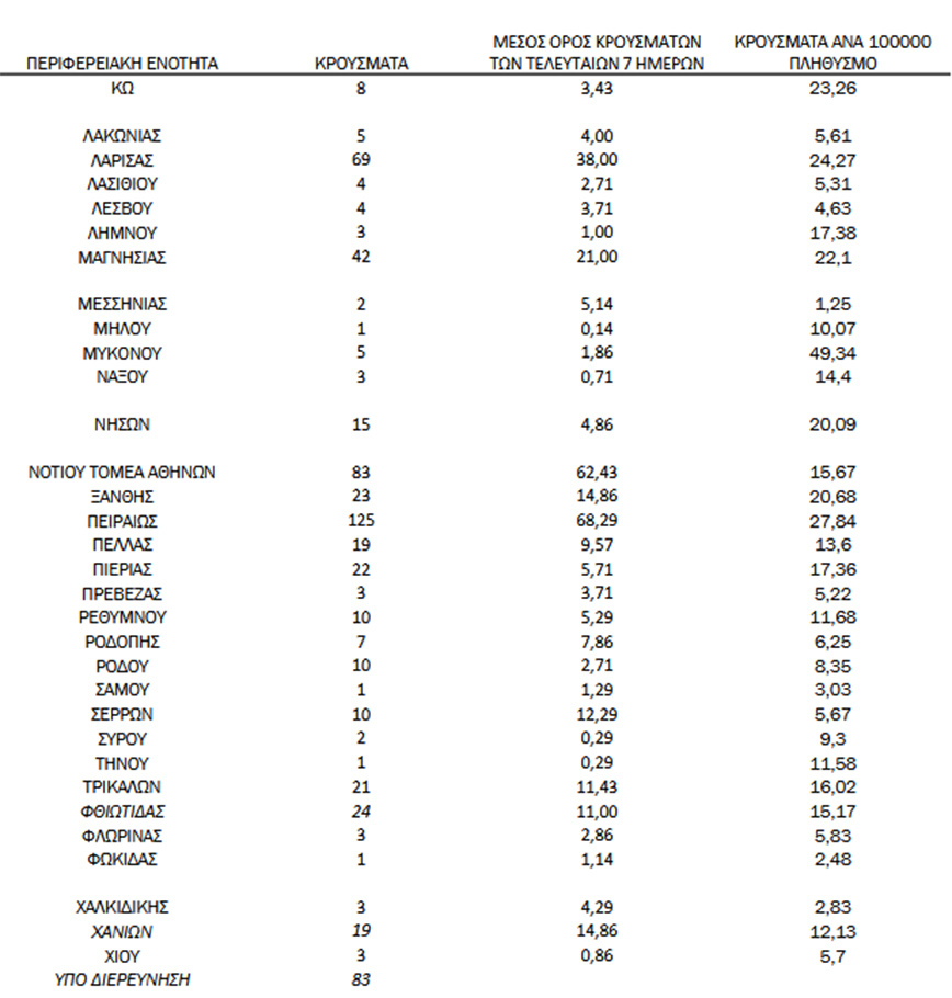 - 24 κρούσματα στην Π.Ε. Φθιώτιδας