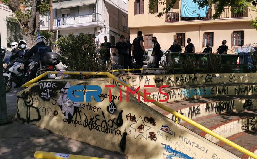 Επιχείρηση της αστυνομίας στην πλατεία Καλλιθέας στη Θεσσαλονίκη για την αποφυγή συνωστισμού πραγματοποιήθηκε το απόγευμα της Τετάρτης (5/5).