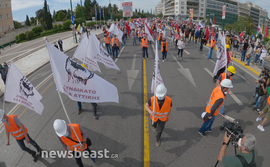 Λόγω της κινητοποίησης αλλά και της απεργίας στα μέσα μεταφοράς, πολλοί δρόμοι στο κέντρο είναι κλειστοί και το μποτιλιάρισμα είναι μεγάλο.