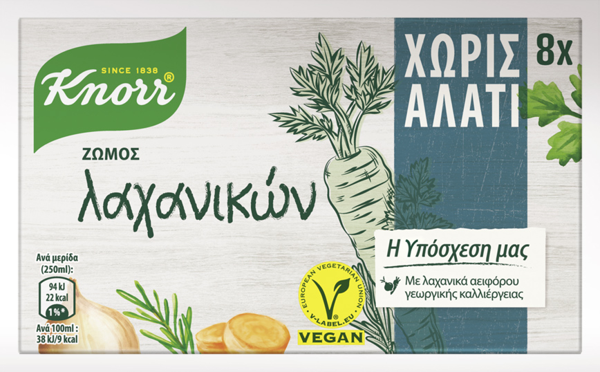 Απαντώντας στις σύγχρονες ανάγκες των καταναλωτών για πιο υγιεινό φαγητό, με πλούσια γεύση και λιγότερο αλάτι, η Knorr έρχεται να ανατρέψει την πεποίθηση ότι το φαγητό χωρίς αλάτι είναι άνοστο, εξασφαλίζοντας γευστικά και πιο υγιεινά πιάτα με τη χρήση των νέων κύβων χωρίς αλάτι.