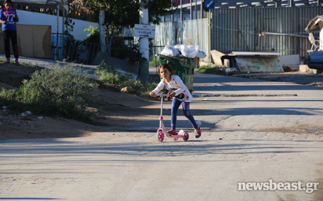 Στο δρόμο χαμογελαστά παιδιά τρέχουν με ποδήλατα, παίζουν με κούκλες αλλά και με τα σκυλιά του καταυλισμού. Πάντα με το χαμόγελο.