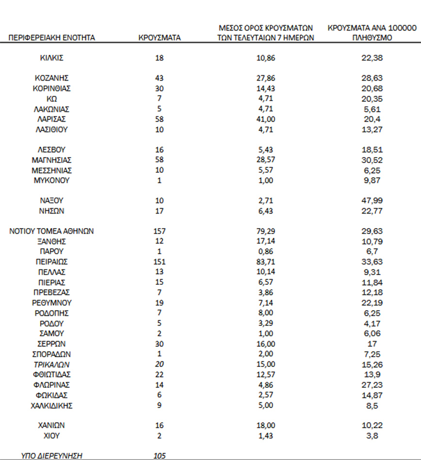 - 22 κρούσματα στην Π.Ε. Φθιώτιδας