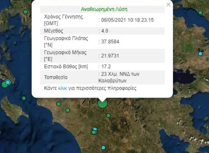 Σύμφωνα με την αυτόματη λύση του Γεωδυναμικού Ινστιτούτου του Εθνικού Αστεροσκοπείου Αθηνών, ο σεισμός είχε μέγεθος 4 βαθμών της κλίμακας Ρίχτερ και το επίκεντρο εντοπίστηκε 23 χιλιόμετρα, νότια, νοτιοδυτικά των Καλαβρύτων, ενώ το εστιακό βάθος προσδιορίστηκε περίπου στα 17 χιλιόμετρα.