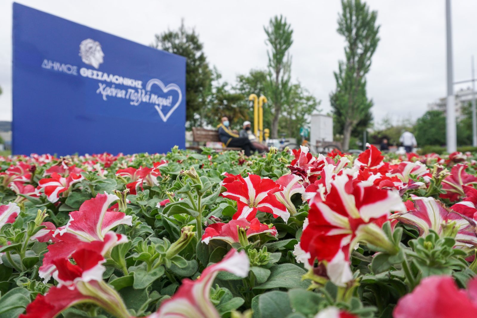 Περίπου δύο χιλιάδες γλαστράκια με πετούνιες χρειάστηκαν, για να σχηματιστεί μια μεγάλη λουλουδένια καρδιά στο πλακόστρωτο της νέας παραλίας στη Θεσσαλονίκη. Πρόκειται για τον συμβολικό τρόπο με τον οποίο ο Δήμος Θεσσαλονίκης επέλεξε να τιμήσει σήμερα τη Γιορτή της Μητέρας.