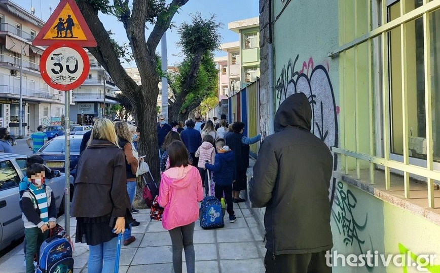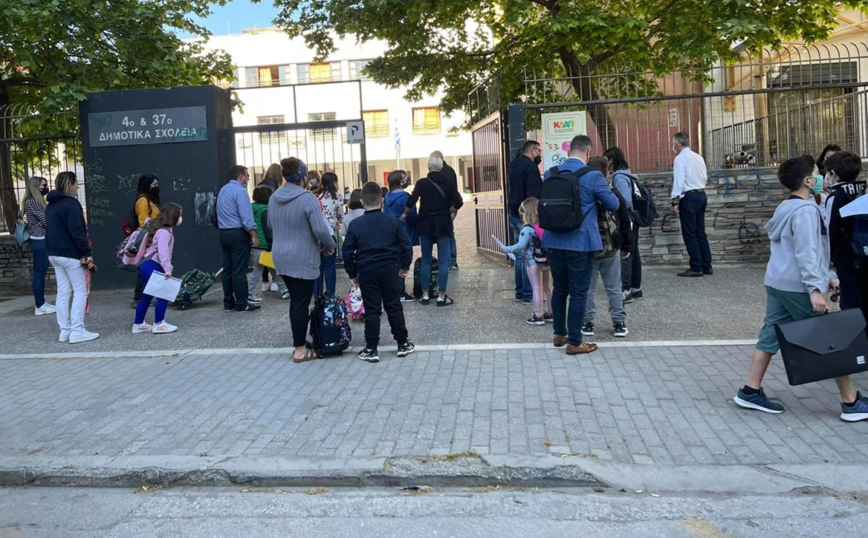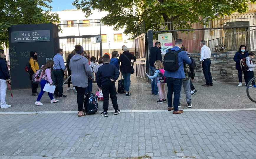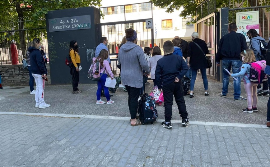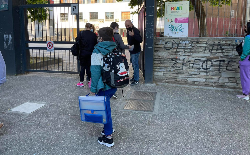 Τηρώντας τα μέτρα ατομικής προστασίας και με αρνητικό self test επέστρεψαν το πρωί της Δευτέρας (10/5) στα θρανία οι μαθητές νηπιαγωγείων, δημοτικών και γυμνασίων της Θεσσαλονίκης και της Λάρισας έπειτα από αρκετούς μήνες τηλεκπαίδευσης.