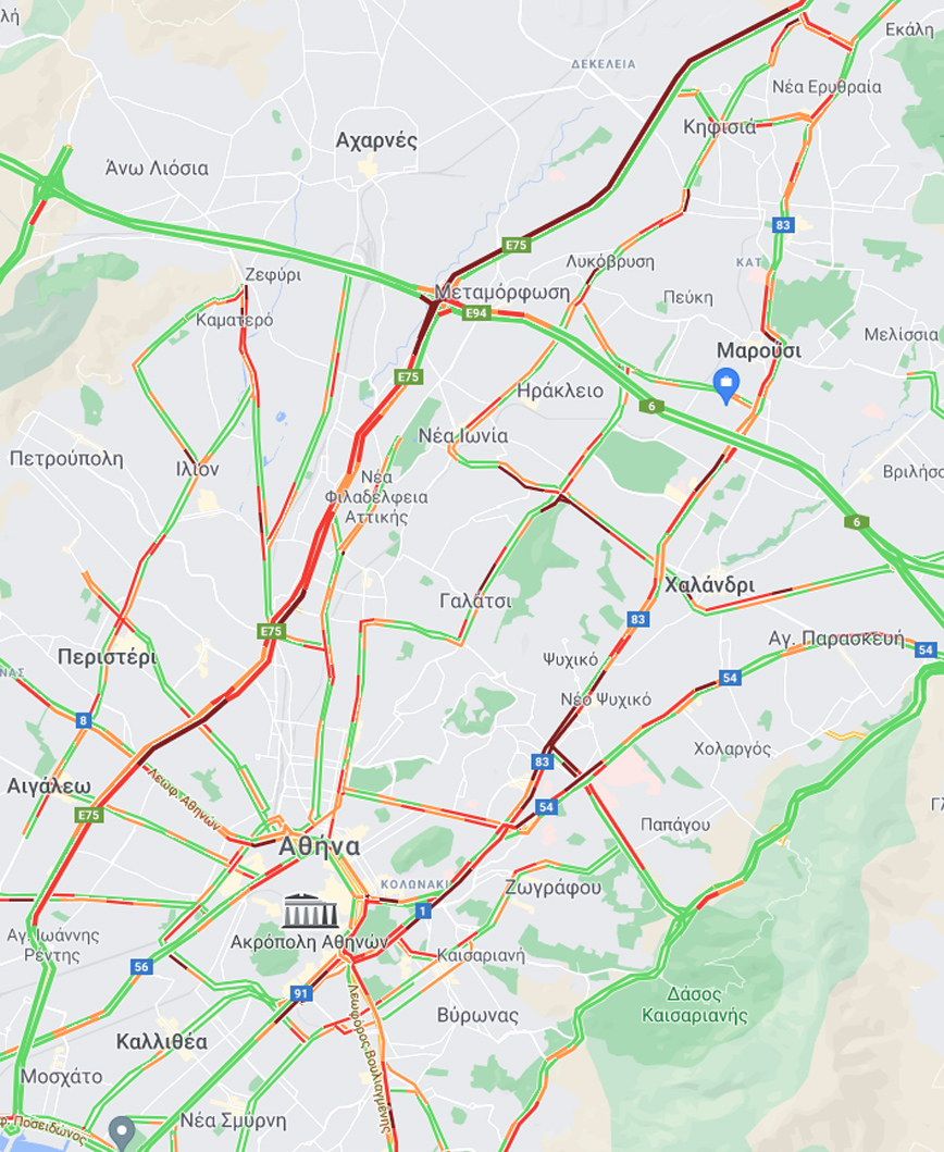 Πολλά προβλήματα και στην άνοδο του Κηφισού, ενώ αυξημένη είναι η κίνηση και σε κεντρικούς δρόμους του λεκανοπεδίου πιθανότατα λόγω και της έναρξης των δια ζώσης μαθημάτων στα σχολεία.