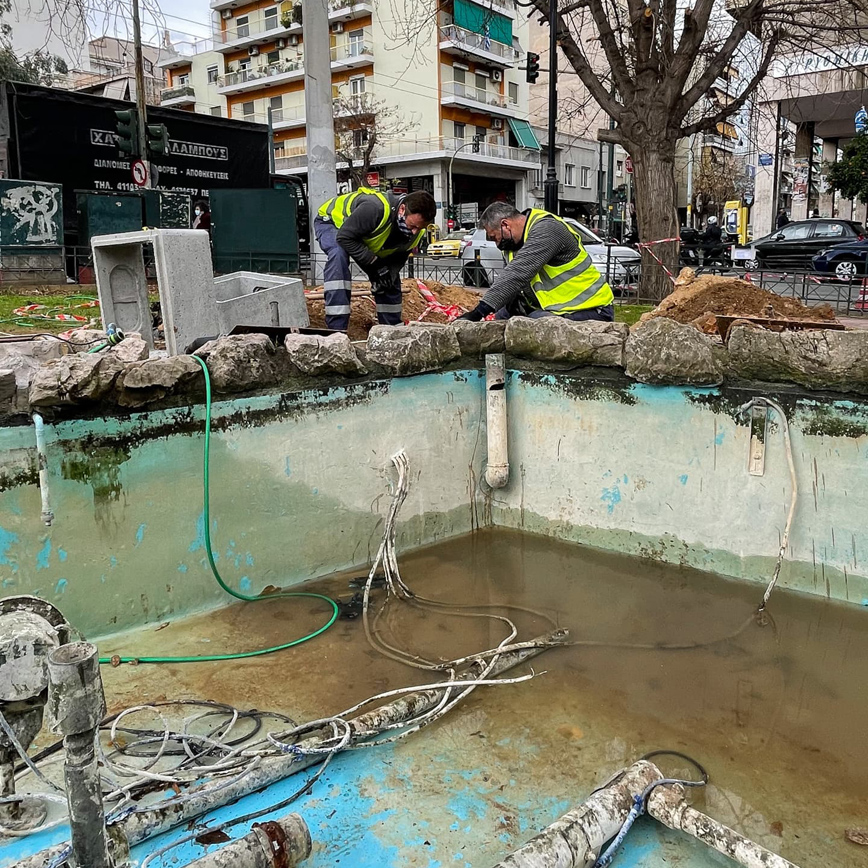 Ήδη ολοκληρώθηκαν οι εργασίες και τέθηκαν σε λειτουργία με τον νέο ηλεκτρομηχανολογικό εξοπλισμό τους 15 σιντριβάνια που βρίσκονται στις πλατείες Τρούμαν, Ρηγίλλης, Ιδρύματος Ερευνών, Μεταξουργείου, Αιγύπτου, Αμερικής, Αττικής, Μεσολογγίου, Ναθαναήλ, Λαυρίου, στη συμβολή των οδών Βεΐκου και Δημητρακοπούλου, στην περιοχή Φιξ Πατησίων, στον Άγιο Νικόλαο Αχαρνών, στον πεζόδρομο της Φωκίωνος Νέγρη (Δροσοπούλου), αλλά και στην οδό Υμηττού. Μάλιστα, τις επόμενες ημέρες ολοκληρώνονται οι εργασίας σε πέντε ακόμη, δύο στη Φωκίωνος Νέγρη (Αγία Ζώνης και Επτανήσου), στο σιντριβάνι του Πνευματικού Κέντρου-Ακαδημίας, καθώς και στις πλατείες Μαβίλη και Μαδρίτης.