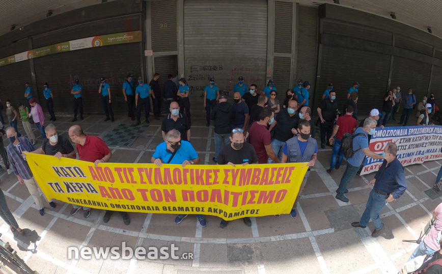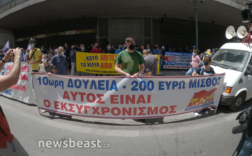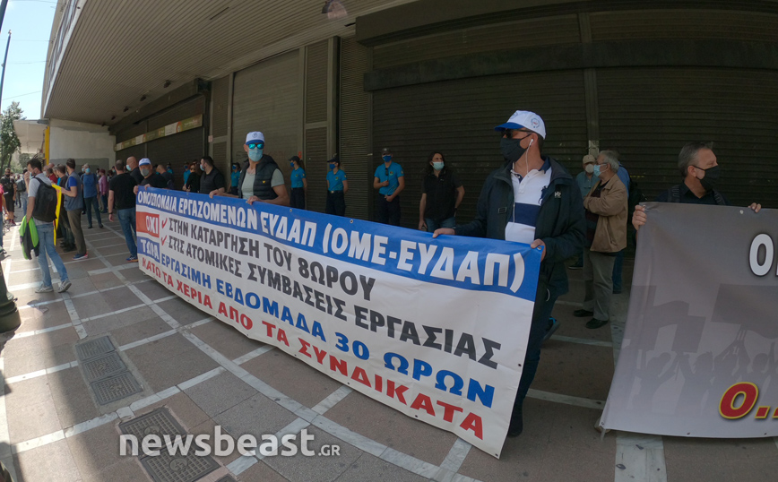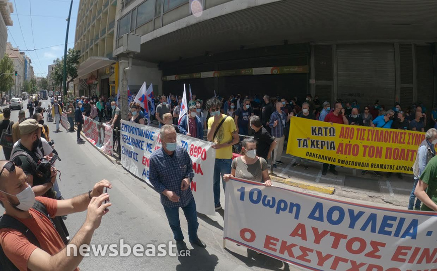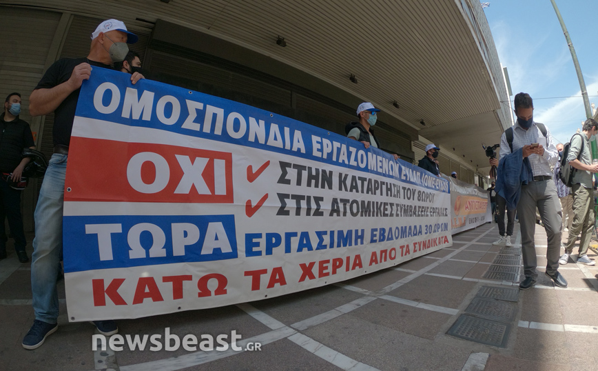 Συγκέντρωση πραγματοποιείται αυτή τη στιγμή έξω από το υπουργείο Εργασίας μετά από έκτακτο κάλεσμα του ΠΑΜΕ, την ώρα που θα πραγματοποιείται η παρουσίαση του νέου εργασιακού νομοσχεδίου.