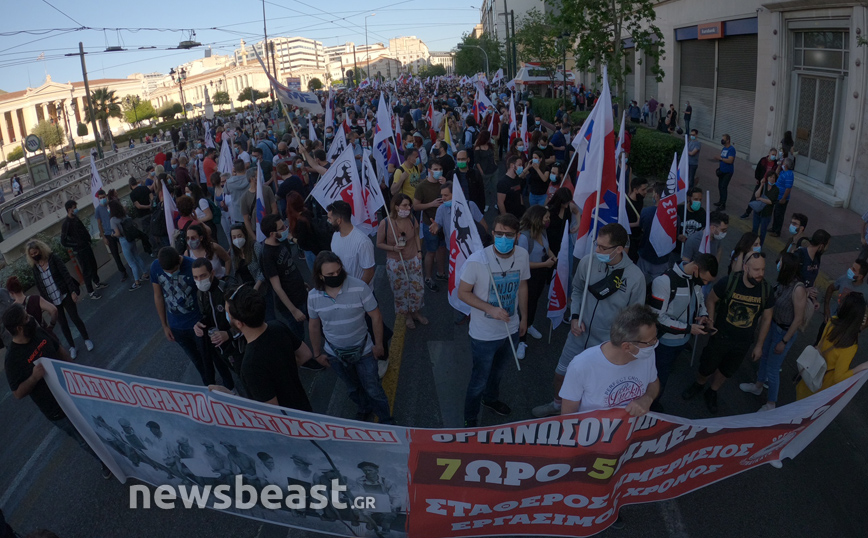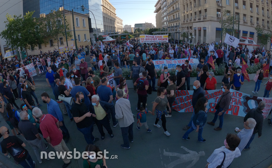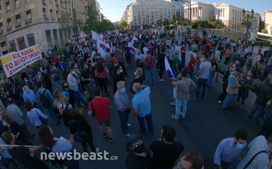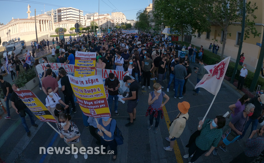 Σε εξέλιξη βρίσκεται η κινητοποίηση εργαζομένων στα Προπύλαια, όπου συνεχίζει να μαζεύεται κόσμος για να διαμαρτυρηθεί ενάντια στο νέο εργασιακό νομοσχέδιο.