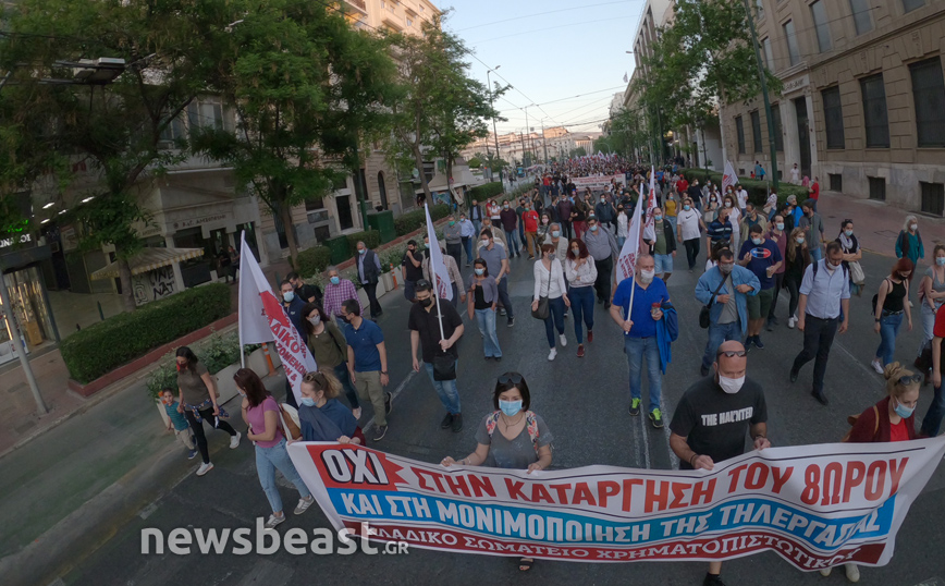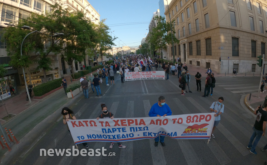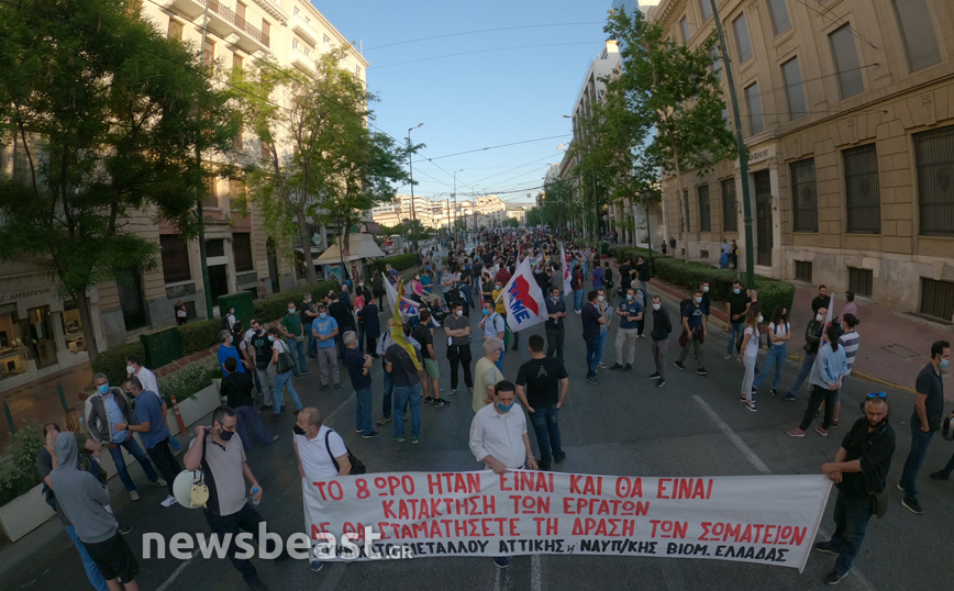 «Κάτω τα χέρια από το 8ωρο – Πάρτε πίσω το νομοσχέδιο έκτρωμα», ήταν το κεντρικό σύνθημα στην κινητοποίηση που πραγματοποιήθηκε στην Αθήνα, από εργαζόμενους που ανταποκρίθηκαν στο σχετικό κάλεσμα ομοσπονδιών και συνδικάτων κατά του νέου νομοσχεδίου.