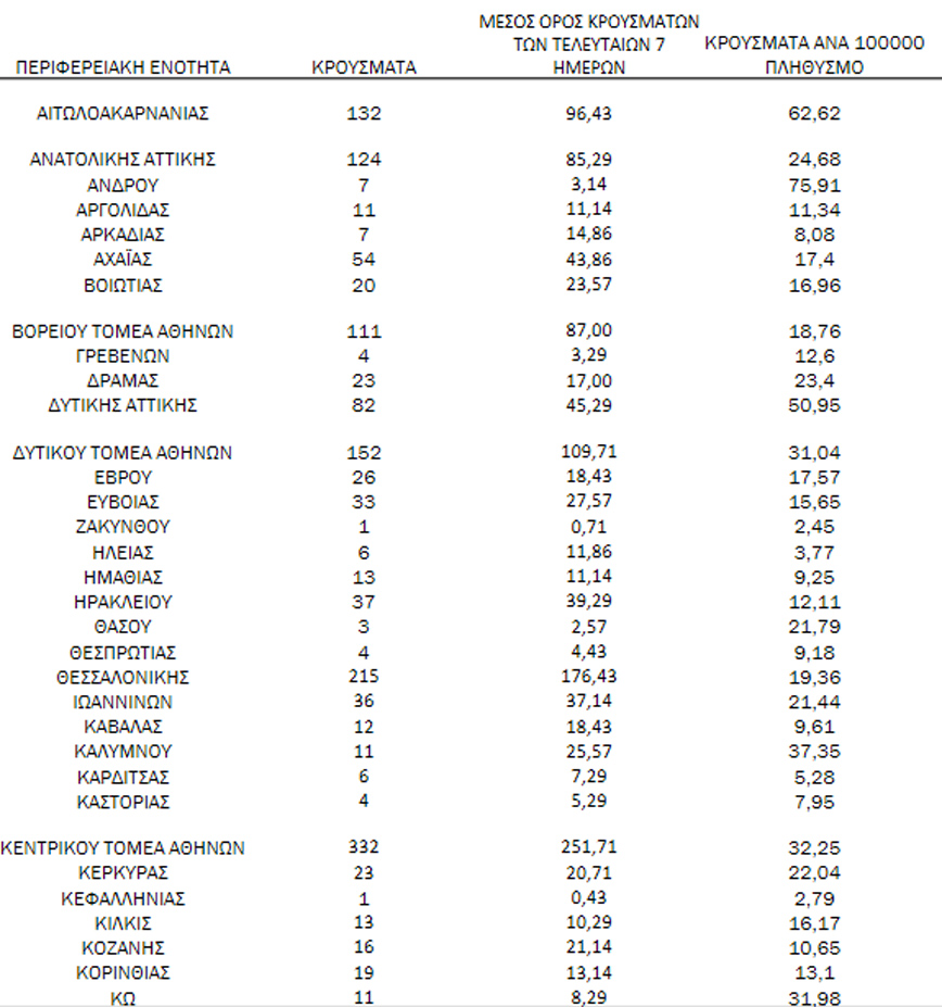 - 132 κρούσματα στην Π.Ε. Αιτωλοακαρνανίας