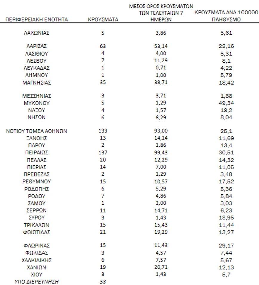 - 54 κρούσματα στην Π.Ε. Αχαΐας