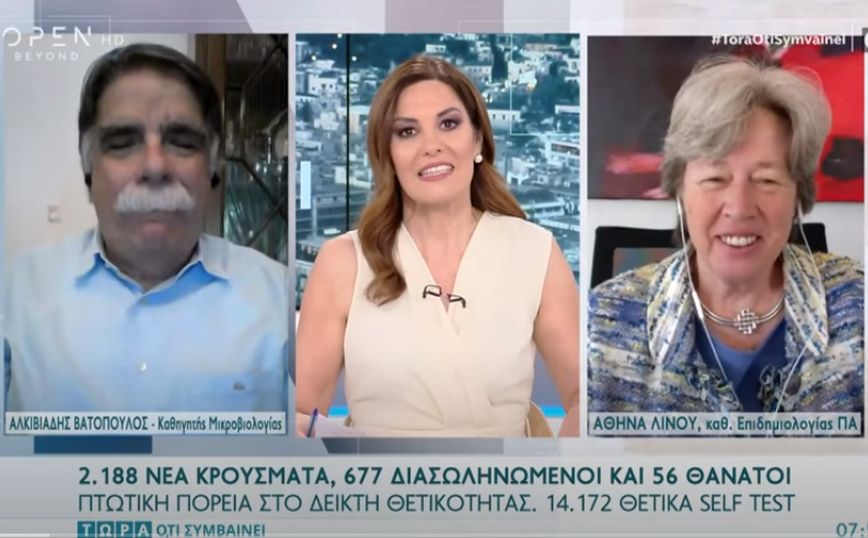 Στην εξέλιξη της πορείας του κορονοϊού στην Ελλάδα και στην άρση των μέτρων, όπως αυτό της χρήσης μάσκας, αναφέρθηκε με τηλεοπτική του τοποθέτηση ο καθηγητής Μικροβιολογίας και μέλος της Επιτροπής των Ειδικών, Αλκιβιάδης Βατόπουλος. Παρέμβαση πραγματοποίησε και η καθηγήτρια επιδημιολογίας Αθηνά Λινού.