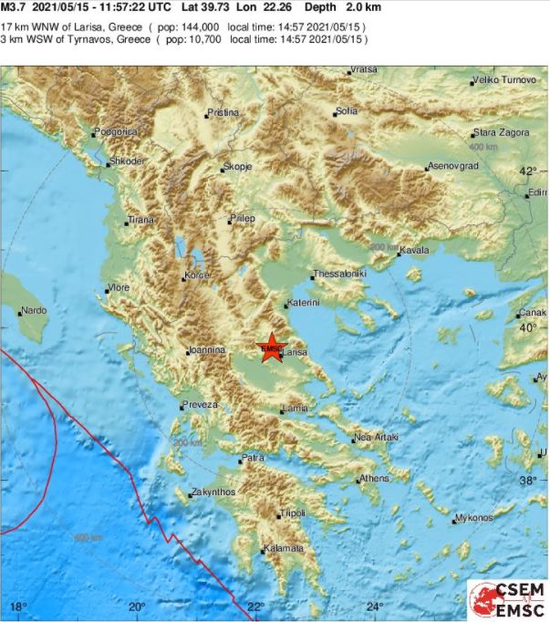 Το Ευρωμεσογειακό Ινστιτούτο, από την πλευρά του, υπολόγισε τη δόνηση επίσης στα 3,7 Ρίχτερ.