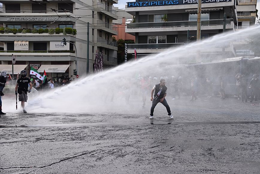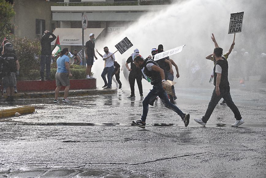 Ένταση δημιουργήθηκε στην πορεία που πραγματοποιήθηκε, το απόγευμα του Σαββάτου, προς την ισραηλινή πρεσβεία ως ένδειξη αλληλεγγύης προς το λαό της Παλαιστίνης για όσα συμβαίνουν τις τελευταίες ημέρες στη Μέση Ανατολή και την κλιμάκωση βίας ανάμεσα σε Ισραηλινούς και Παλαιστίνιους.