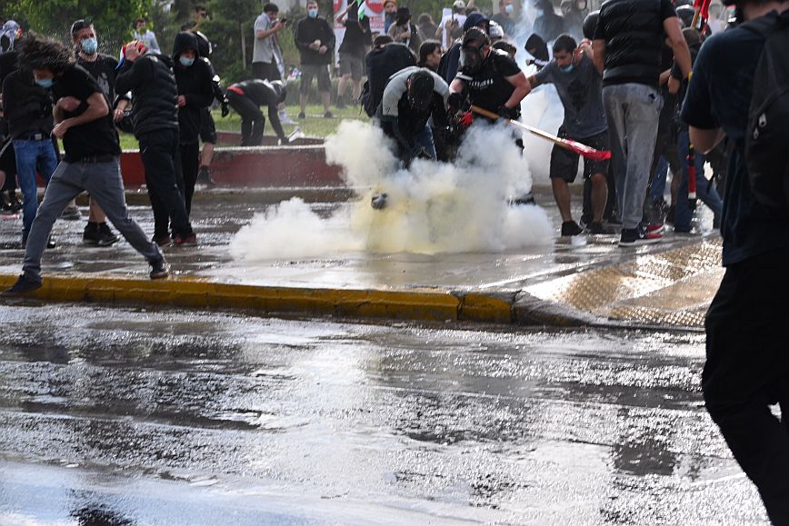 Σύμφωνα με την αστυνομία έχουν γίνει αρκετές προσαγωγές ενώ υπάρχουν πληροφορίες και για έναν αστυνομικό που έχει τραυματιστεί.