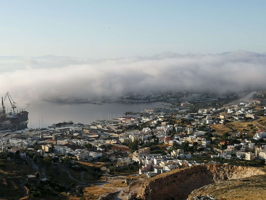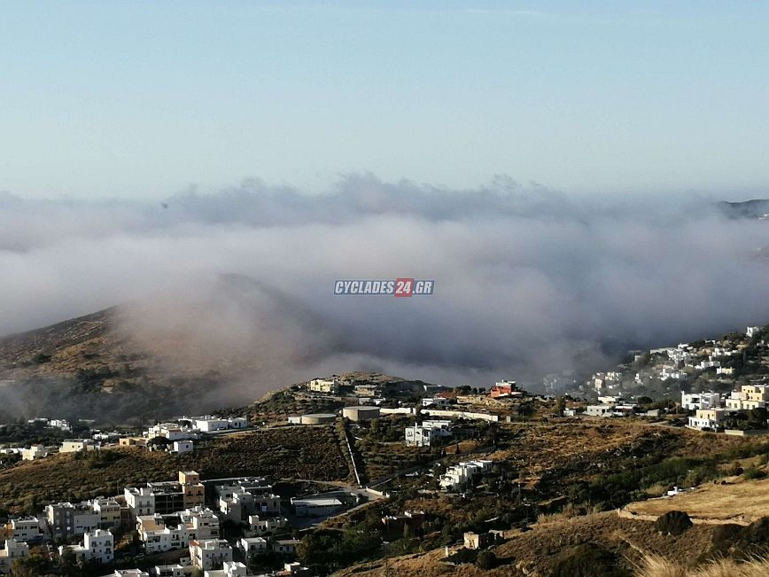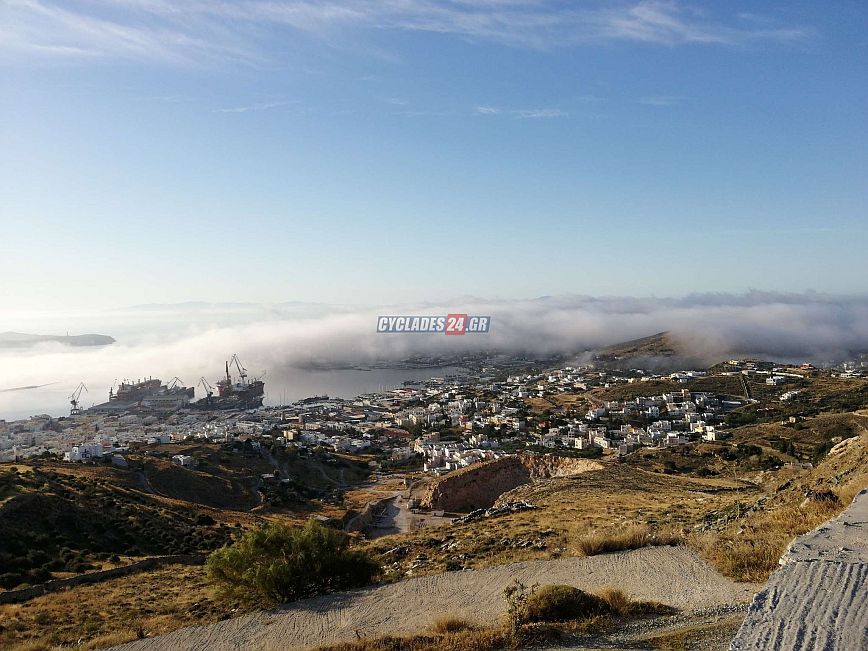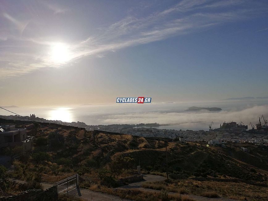 Ομιχλώδες ήταν και το τοπίο σήμερα το πρωί στην Σύρο, με το καιρικό φαινόμενο «sea smoke» (θαλάσσιος καπνός) να είναι έντονο και στην Ερμούπολη και στα χωριά.