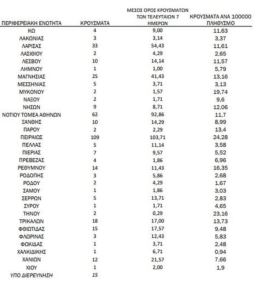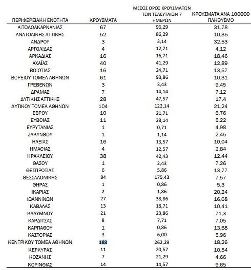 Συγκεκριμένα στην Αιτωλοακαρνανία όπου τα νέα κρούσματα ήταν 67 ενώ το μεγαλύτερο πρόβλημα εντοπίζεται στο Μεσολόγγι.