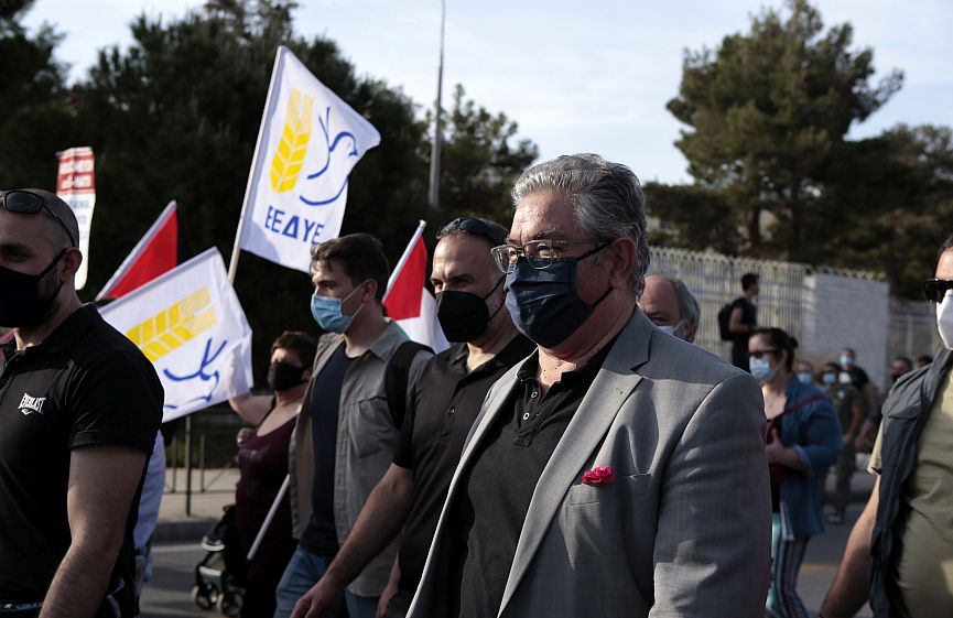 «Είμαστε εδώ για να εκφράσουμε την αλληλεγγύη μας στον σκληρά δοκιμαζόμενο Παλαιστινιακό λαό από τις εγκληματικές επιθέσεις του Ισραήλ που γίνονται με τις πλάτες των Αμερικανών, του ΝΑΤΟ, της ΕΕ.
