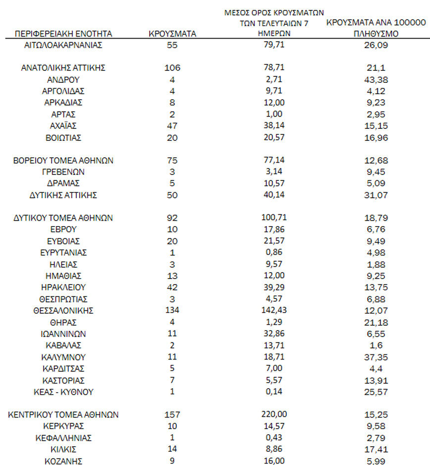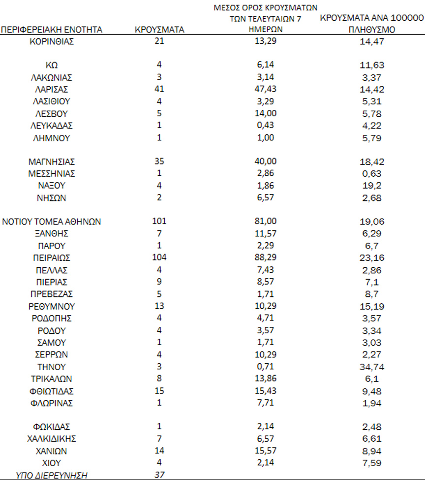 - 21 κρούσματα στην Π.Ε. Κορινθίας