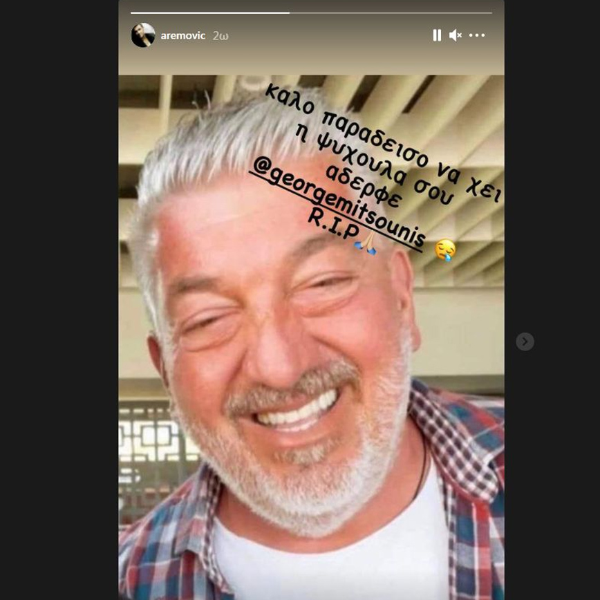 «Καλό παράδεισο να έχει η ψυχούλα σου, αδερφέ μου!» έγραψε ο τραγουδιστής και μοιράστηκε με τους διαδικτυακούς του φίλους μια φωτογραφία του Γιώργου Μιτσούνη.