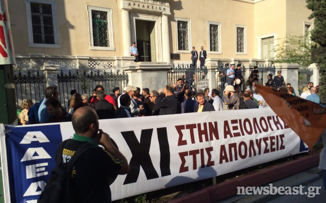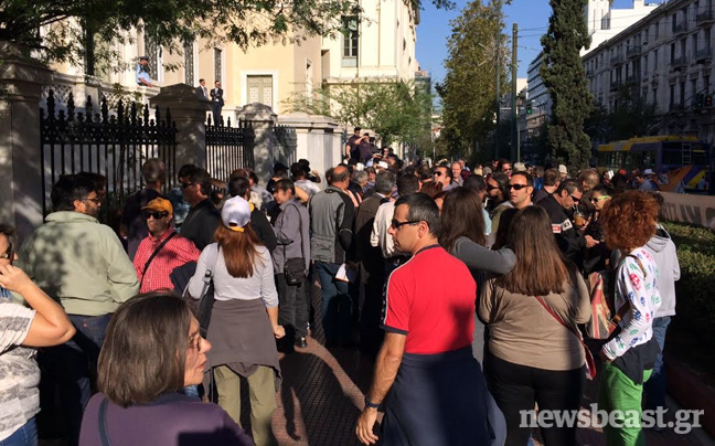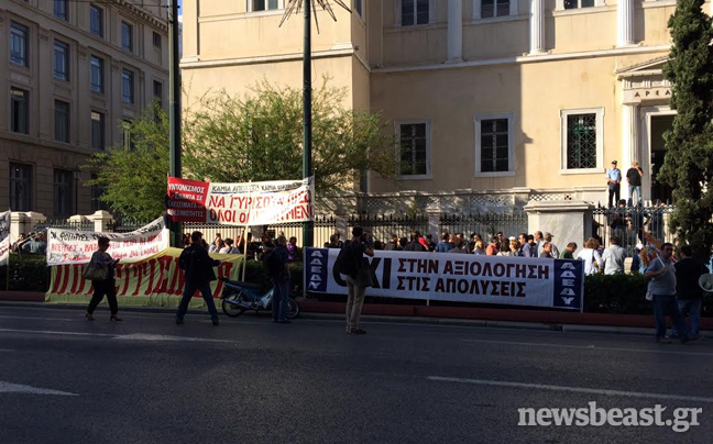 Συγκέντρωση διαμαρτυρίας έξω από το Συμβούλιο της Επικρατείας πραγματοποιούν αυτή την ώρα ΑΔΕΔΥ, ΠΟΕ-ΟΤΕ, δάσκαλοι και καθηγητές σε διαθεσιμότητα, καθώς στην Ολομέλεια του ΣτΕ δίνεται σήμερα μια ακόμη μάχη για το θέμα της αξιολόγησης των ουσιαστικών προσόντων των δημοσίων υπαλλήλων.