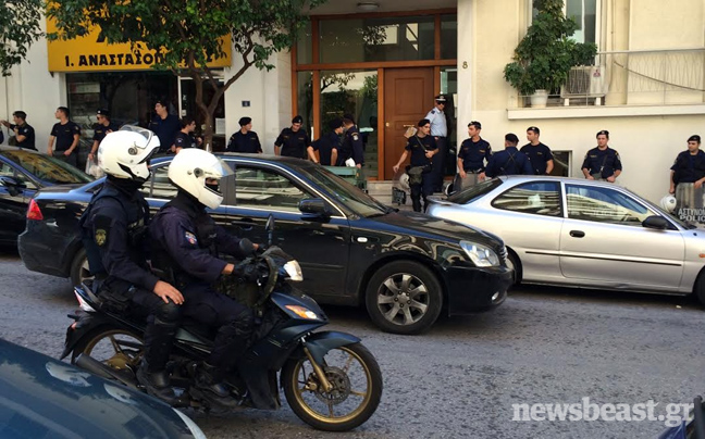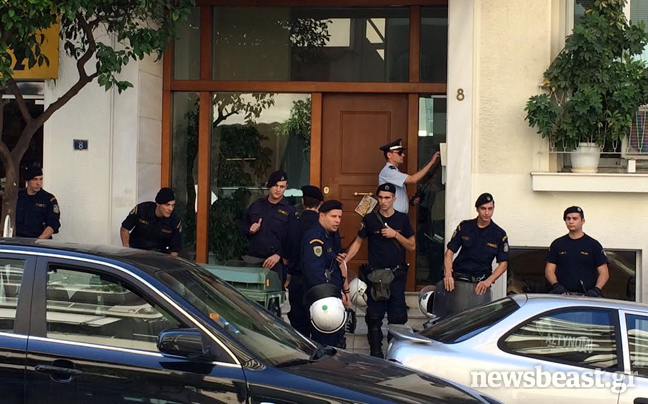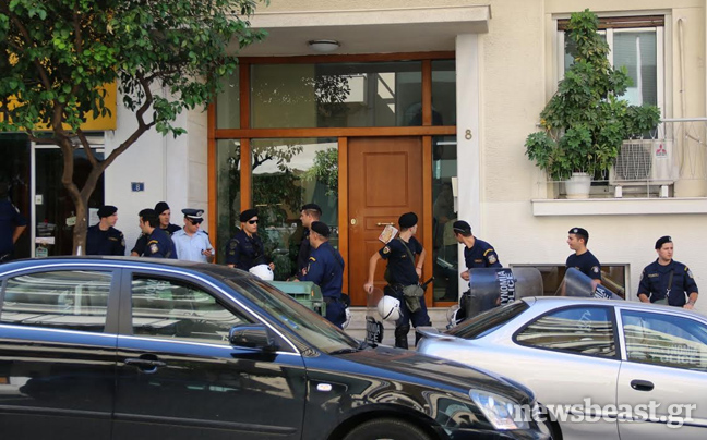 Ισχυρές δυνάμεις της αστυνομίας βρίσκονται στην είσοδο του κτιρίου, ενώ περίπου 15 διαδηλωτές κατάφεραν να εισέλθουν στο κτίριο και μέσω της ταράτσας, να μεταπηδήσουν στο μπαλκόνι έξω από το γραφείο του υπουργού.