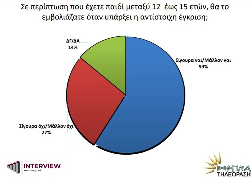 Επίσης 59% των ερωτηθέντων λέει ναι στον εμβολιασμό παιδιών 12 έως 15 χρόνων.