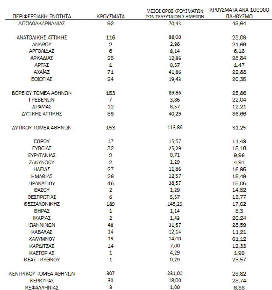 Συγκεκριμένα η Αττική έχει 1.053 νέα κρούσματα κορονοϊού, ενώ η Θεσσαλονίκη 189.