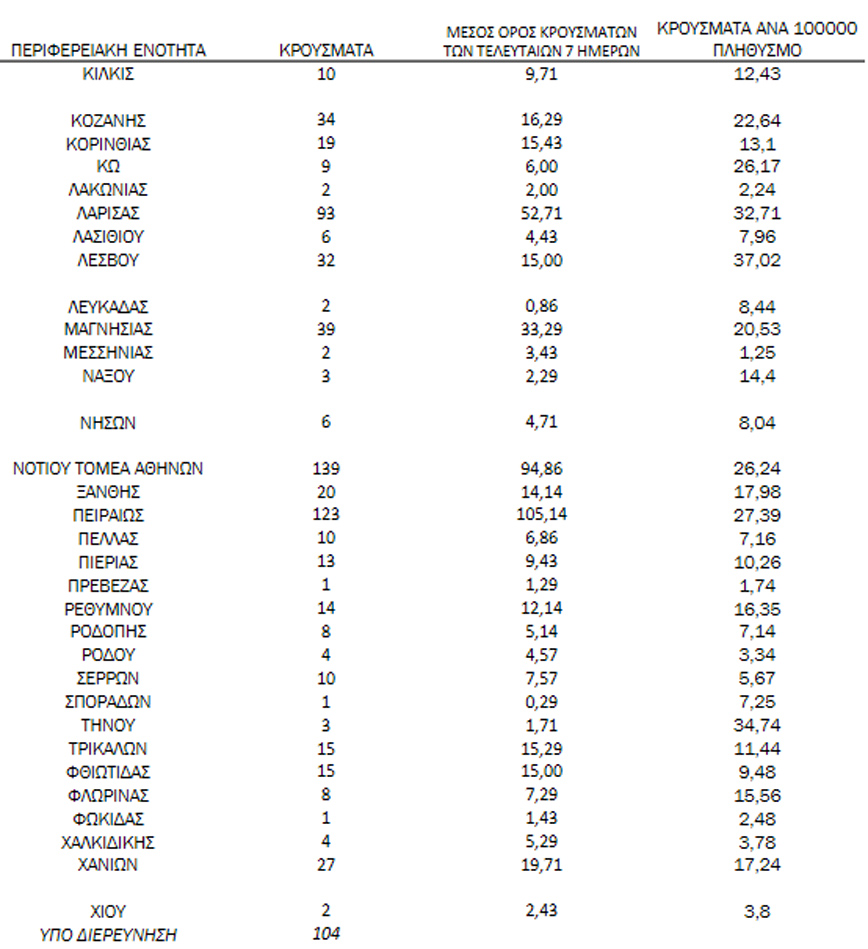 - 71 κρούσματα στην Π.Ε. Αχαΐας