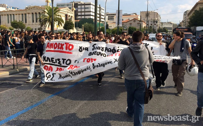 Στη Νομική κατευθύνονται αυτή την ώρα οι φοιτητές που πραγματοποίησαν νωρίτερα συγκέντρωση διαμαρτυρίας στα Προπύλαια.