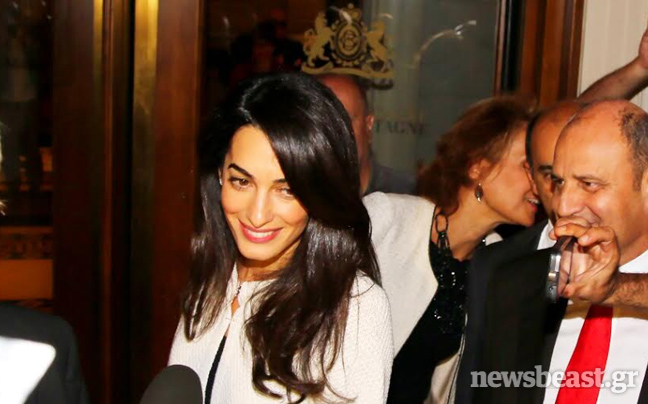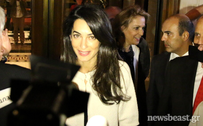 Η δικηγόρος Αμάλ Αλαμουντίν και σύζυγος του Τζορτζ Κλούνεϊ έφτασε σήμερα στις 7 μ.μ. στο Ελ. Βενιζέλος μαζί με την αποστολή της και όταν αφίχθη στο ξενοδοχείο όπου θα διαμείνει -όπου τη συνόδευσε όχημα της ΕΛ.ΑΣ.- έκανε μια σύντομη δήλωση στην οποία ευχαρίστησε για την πρόσκληση η οποία την έφερε στην ελληνική πρωτεύουσα.