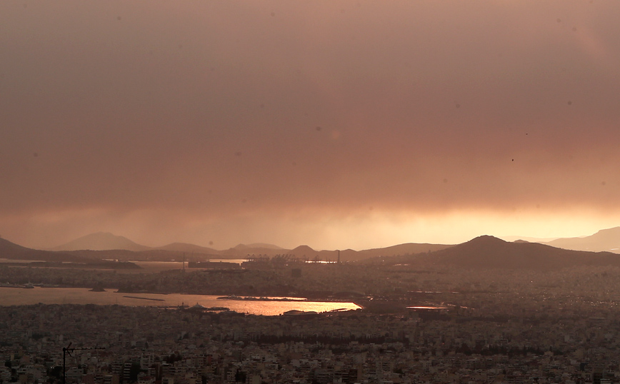 Κόκκινος έγινε ο ουρανός της Αθήνας χθες Πέμπτη 20/5 από τον καπνό της μεγάλης φωτιάς που ξεκίνησε στον Σχίνο Κορινθίας από την Τετάρτη το βράδυ.