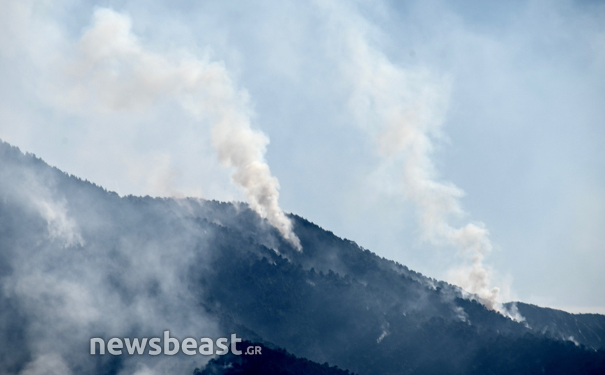 Αρκετές είναι οι ενεργές εστίες της μεγάλης φωτιάς που καίει από την Τετάρτη το βράδυ στα Γεράνεια Όρη.