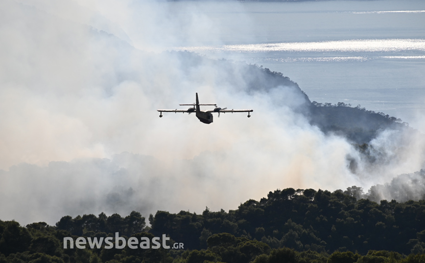 Στο σημείο επιχειρούν 268 πυροσβέστες και 89 οχήματα, ενώ εναερίως συνδράμουν 8 Canadair, 10 Πετζετέλ, 2 ελικόπτερα και 1 ελικόπτερο συντονισμού.