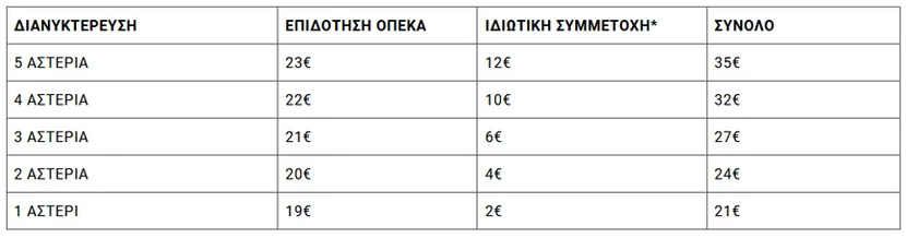 *Ανώτατο ποσό συμμετοχής δικαιούχου/διανυκτέρευση, χωρίς πρωϊνό