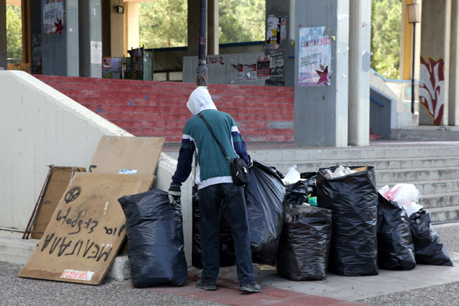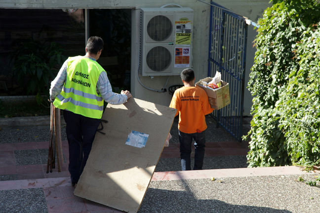 Ο πρύτανης του Πανεπιστημίου Αθηνών, Θεόδωρος Φορτσάκης, ζήτησε τη βοήθεια του Δήμου Αθηναίων για να λυθεί προσωρινά το πρόβλημα. Έτσι χθες τα συνεργεία του δήμου, με 25-30 εργαζόμενους, καθάρισαν το χώρο από τους σωρούς σκουπιδιών που έφτασαν τους 5,5 τόνους.