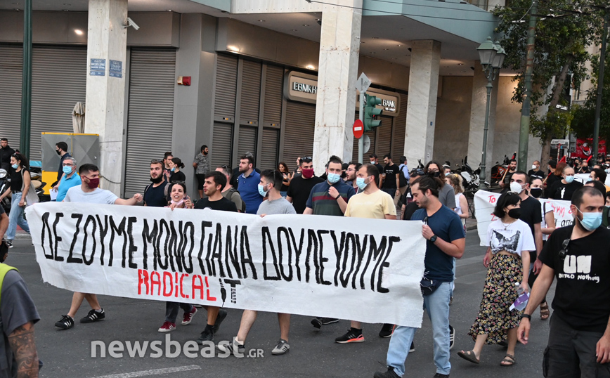 Πορεία ενάντια στο νέο εργασιακό νομοσχέδιο πραγματοποιήθηκε το απόγευμα της Παρασκευής (28/5) στο κέντρο της Αθήνας.