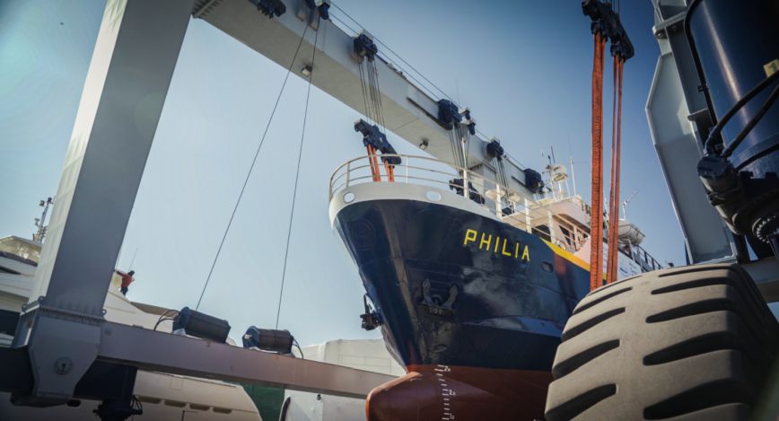 Το έργο της επιμήκυνσης ολοκληρώθηκε και το «Φιλία» καθελκύστηκε το πρωί της Παρασκευής προκειμένου να συνεχιστούν οι υπόλοιπες εργασίες της ανακατασκευής εν όρμω. Η επιχείρηση της καθέλκυσης ξεκίνησε στις 9 το πρωί με τη βοήθεια γερανογέφυρας, οι ιμάντες της οποίας έχουν τη δυνατότητα ανύψωσης βάρους 800 τόνων.