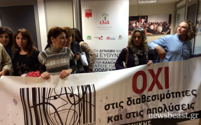 Παράσταση διαμαρτυρίας πραγματοποιούν αυτήν την ώρα εκπαιδευτικοί, που έχουν τεθεί σε διαθεσιμότητα, στο πολιτικό γραφείο του υπουργού Παιδείας Ανδρέα Λοβέρδου, στο κέντρο της Αθήνας.