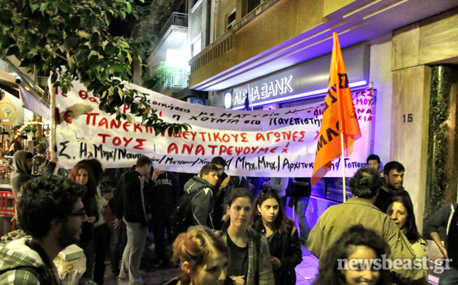 Οι διαδηλωτές άλλαξαν πορεία και αντί για τα Προπύλαια κατευθύνθηκαν προς την οδό Βαλαωρίτου, όπου βρίσκεται το πολιτικό γραφείο του υπουργού Παιδείας, Ανδρέα Λοβέρδου, όπου ενώθηκαν με τους αδιόριστους καθηγητές και συνεχίζουν την κινητοποίησή τους.