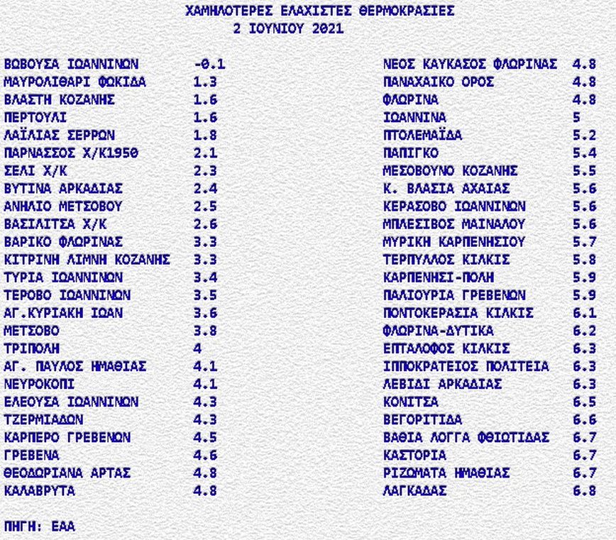 Αυτό όμως, όπως φαίνεται δεν ισχύει για όλες τις περιοχές της Ελλάδας αφού υπάρχει μια περιοχή στην οποία οι κάτοικοι ένιωσαν κρύο και μάλιστα πολύ κρύο αφού το θερμόμετρο έδειξε -0,1.
