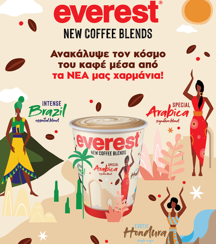 Η νέα σειρά χαρμανιών καφέ ήρθε για να ανανεώσει την προσωποποιημένη εμπειρία καφέ που προσφέρουν τα everest σε κάθε τους πελάτη. Η γνωστή αλυσίδα είναι η πρώτη που προσέφερε στους πελάτες της τη δυνατότητα επιλογής χαρμανιών, ενώ έχει συνδέσει διαχρονικά το όνομά της με τον καθημερινό καφέ των ανθρώπων που κινούνται μέσα στην πόλη.