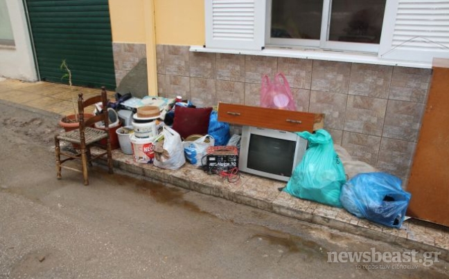 Λάσπες μέσα στα σπίτια, κατεστραμμένες και πεταμένες οικοσυσκευές έξω από αυτά. Αυτοκίνητα στραπατσαρισμένα παραδόθηκαν στην σφοδρότητα των νερών.