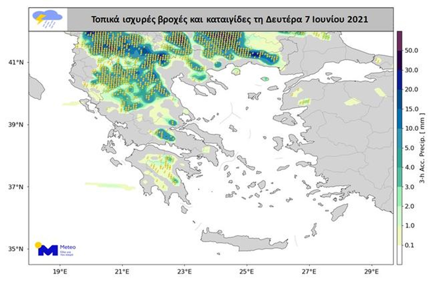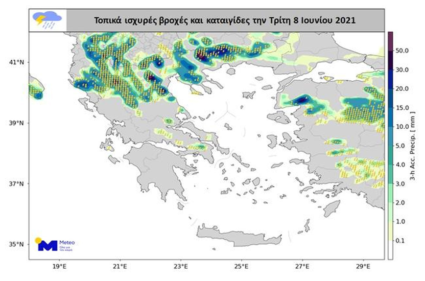 Σύμφωνα με τον μετεωρολόγο Γιάννη Καλλιάνο, σήμερα αναμένονται τοπικά ισχυρές βροχές και καταιγίδες κυρίως στις παραπάνω περιοχές.