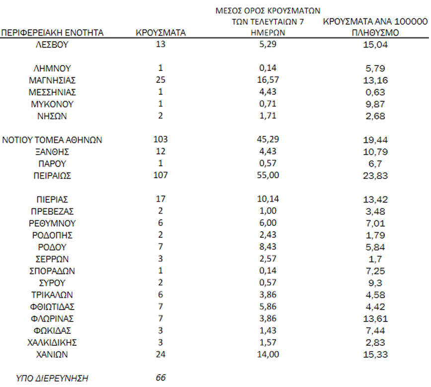 - 66 κρούσματα υπό διερεύνηση