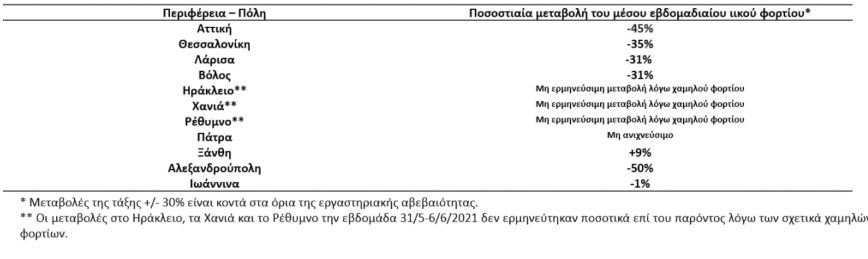 Παρακάτω δίνονται περισσότερες διευκρινίσεις σχετικά με τα αποτελέσματα της εβδομάδας 31 Μαΐου – 6 Ιουνίου 2021, ανά περιοχή: